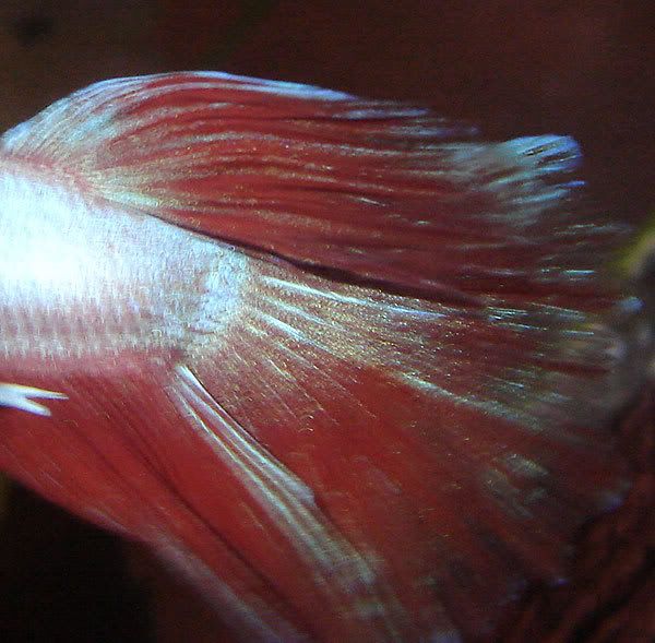 I went to Petsmart today to pick up some stuff for my 10G and to get the rescue betta. Most of the bettas are just sort of in cramped containers, but not exactly ill, so I narrowed it down to two. Number one was a baby, yellow-with-opaque fins that had a bit of finrot on his dorsal, and the second was a sort of unpleasant, dirty red colored CT with what looked like uncomfortable fin rot. I got him. Without further ado, I present Larry.