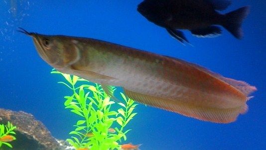 This is my silver arowana. I haven't been able to measure him yet but he is a little longer than the alligator gar so I would estimate he is about 16 inches long.
