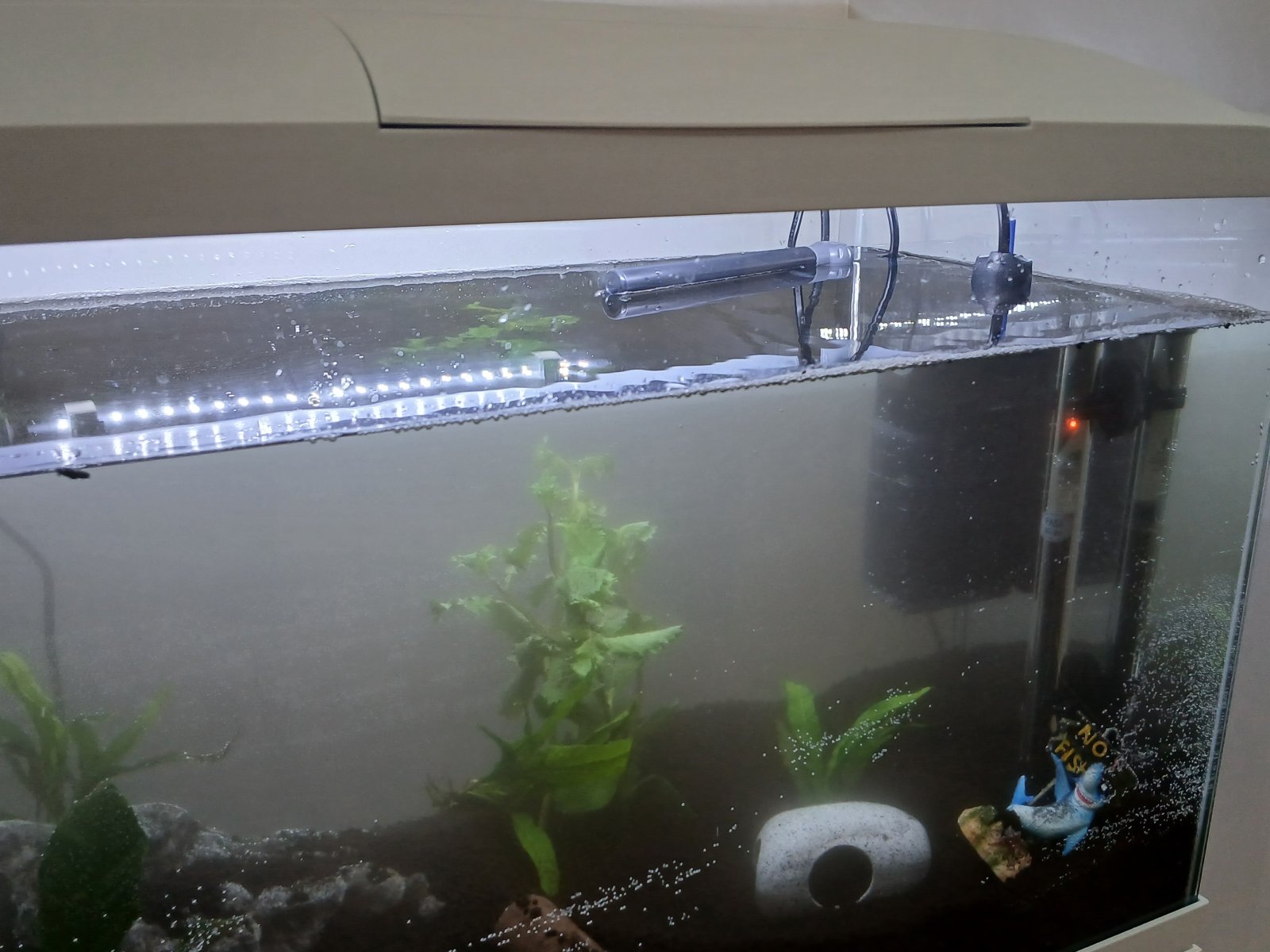 There are a few Nerite snails helping with the algae.