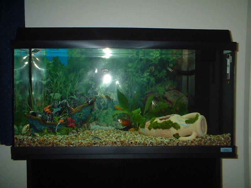 Have you thought about a black background. I have just chamged to one of them last night and its the best thing I have ever done. maybe a couple of tall plants at the back its lovely though. i love deep tanks.