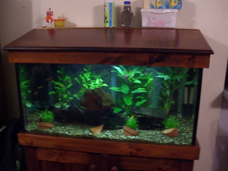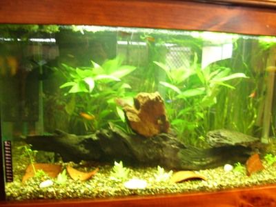 in this tank i have atm as far as inhabitants: 1 flying fox, 1 dwarf gourami, 9 guppies (all self bred), guppy fry, 20 neon tetras, 3 platties, 1 swordtail and 6 corries.