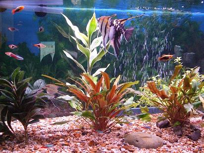 As said by Dark, I agree... I don't like the castle or the airstone showing, and that one plant isn't aquatic. Aswell, I'm not a fan of that gravel... It looks too... well fake I guess, it looks to me like you just glued the gravel together in that shape and dropped it in.