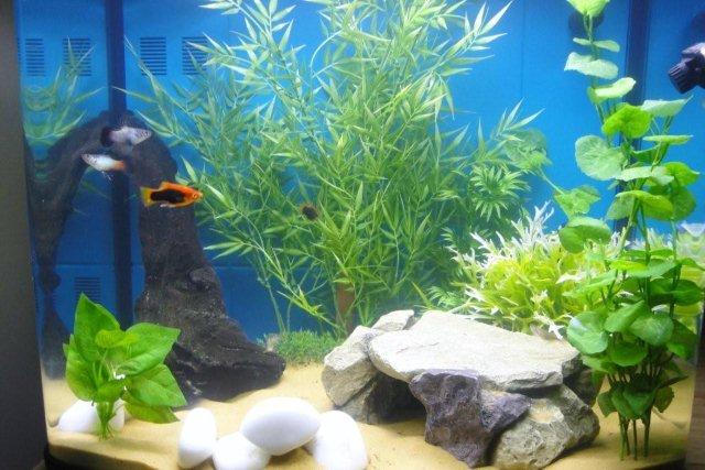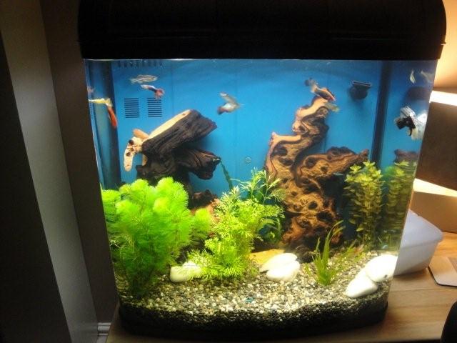 Very nice tank, simple yet effective. I have to say, nice platy choices as well. Myself, I've got 3 of those tuxedo platties (2f, 1m, the male is a red while the females are an orange), along with 6 other platties.