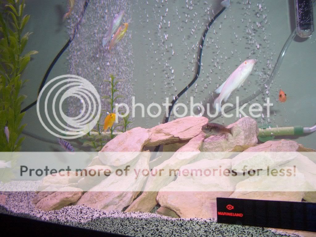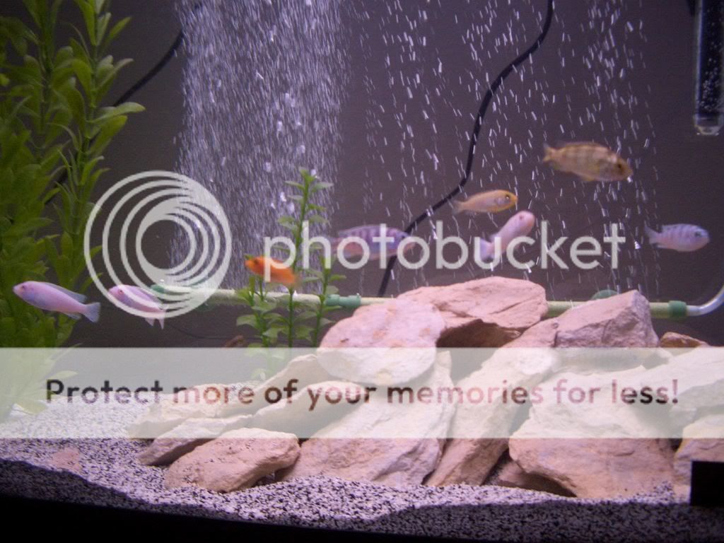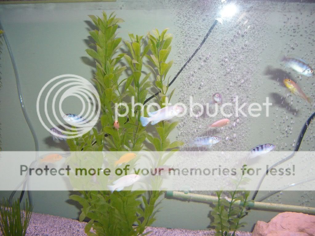 contents: 18 african cichlids (kenyi, yellow lab, 2 blotch i think, a zebra oblaque, 3 albino and some others i dont know), 1 albino pleco, 1 spotted pleco