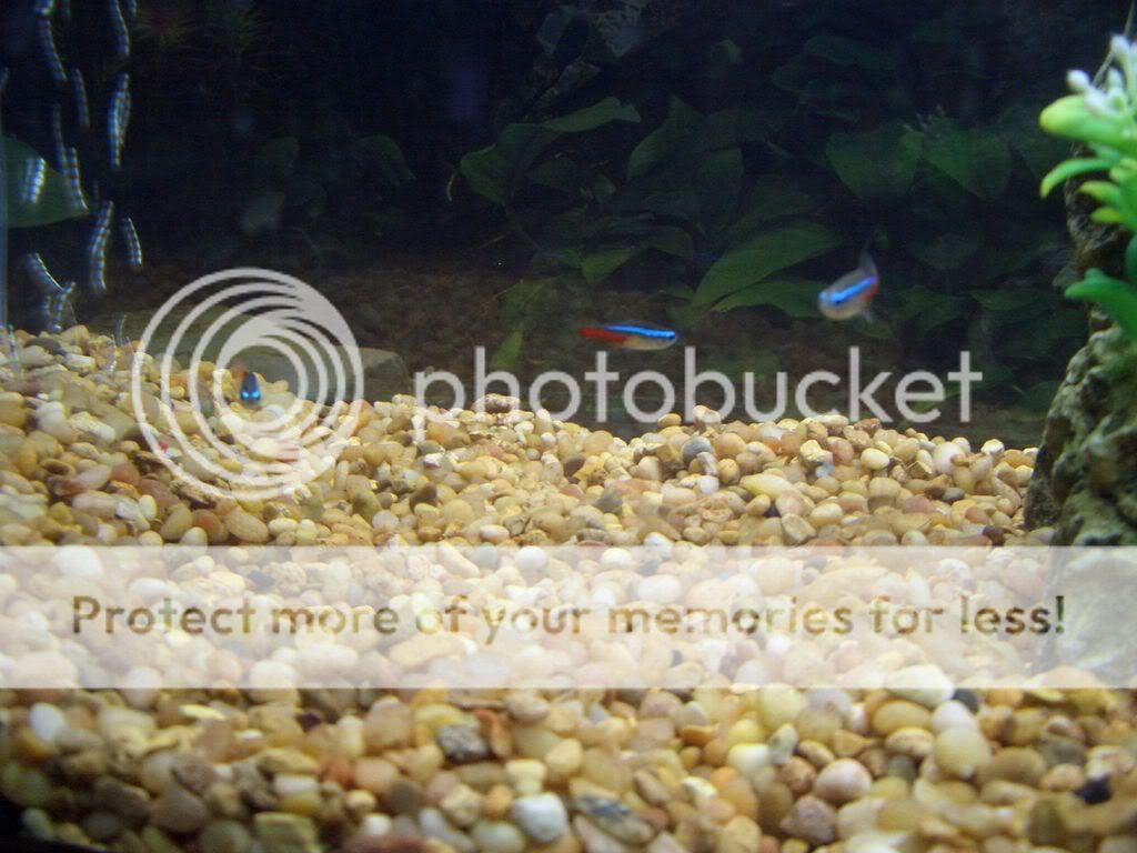 contents: 5 neons, 3 black stripe tetras, 1 snail (somewhere in there)