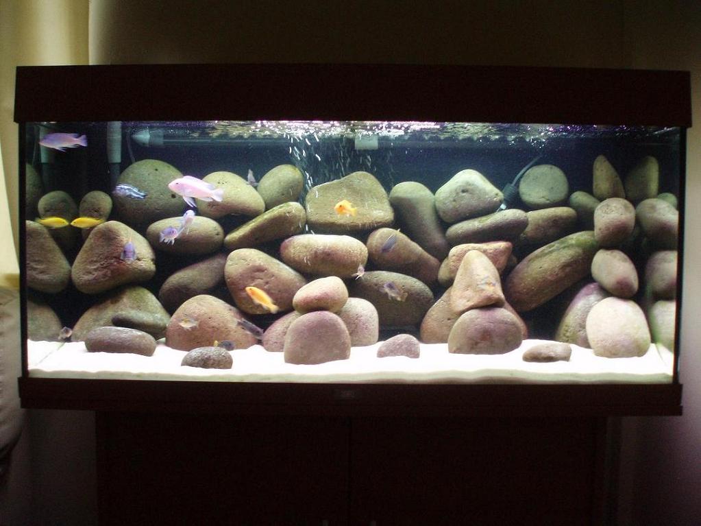 contents: 18 african cichlids (kenyi, yellow lab, 2 blotch i think, a zebra oblaque, 3 albino and some others i dont know), 1 albino pleco, 1 spotted pleco