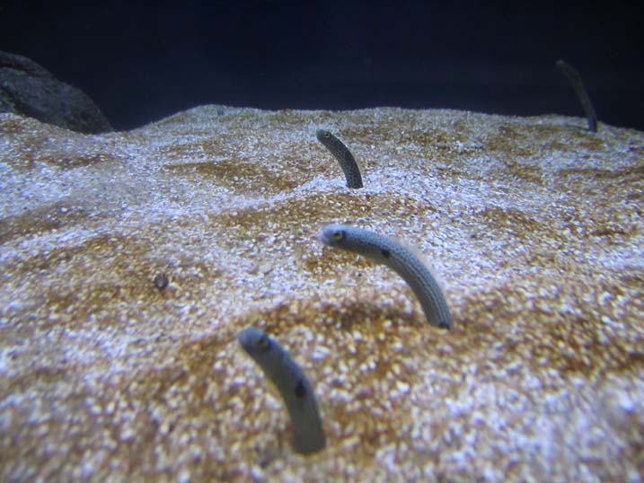 What are those little worm things? They popped in and out of the sand. The crabs are huge! The lion tank was one of my favorites, it had the eels seen in the pic, and about 10x foot long lions