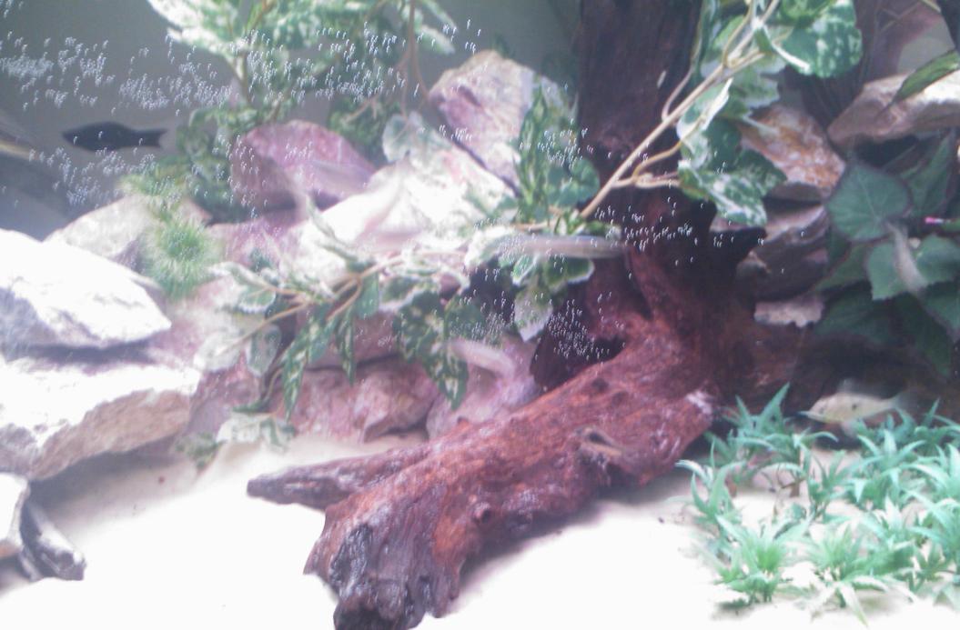 i have chosen to go with a sand subsrate and plenty of slate rock for the back round. this provide plenty of caves for the fish to retreat to and feel safe.