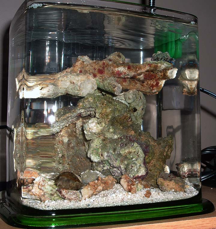 correct, inverts only, next week there will be some corals and mushrooms added,and thats about it. the levels may indeed be a problem, so to take care of it there is a 5 gallon pail of saltwater aerating as well, and it is about a cup water change weekly, unless there is a problem.