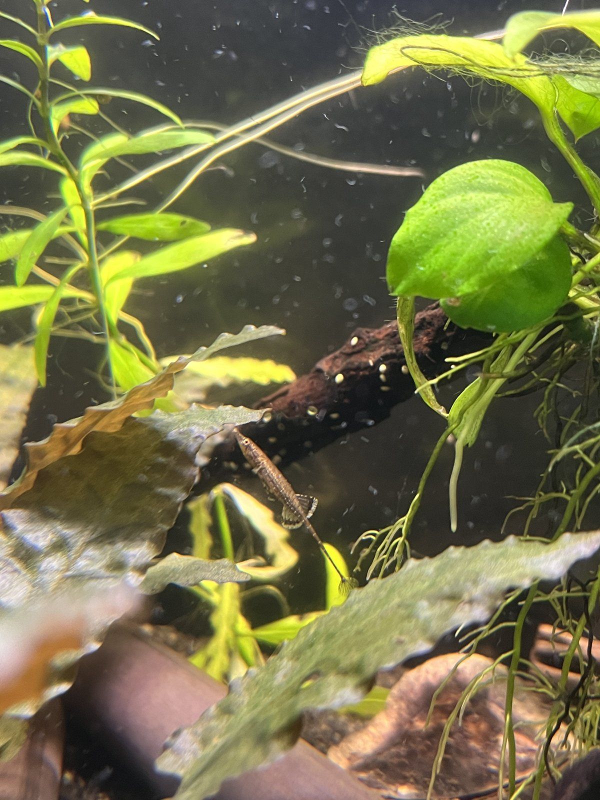 So light brown/dark brown on a fish that is like 1 cm and mostly brown