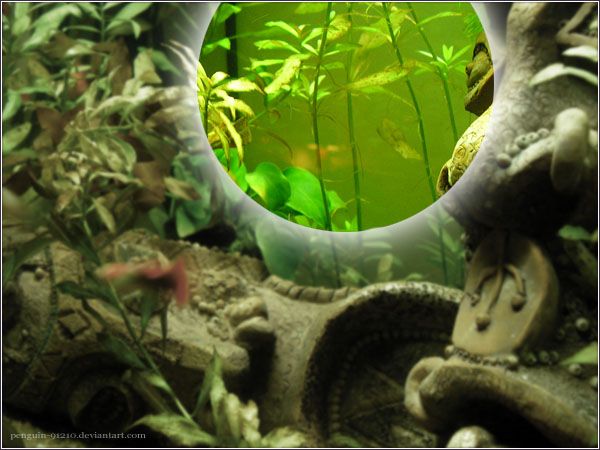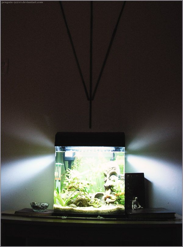 This is my thirty-four litre (eight to nine gallon) tank named for the tribal heads decorating it (which my brother named 'Goobas'.) It's also my first tank beyond(ignorantly) keeping goldfish when I was a kid.