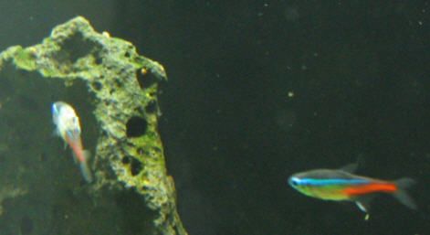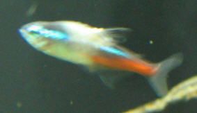 So anyways, I remove the remains fo the clown and noticed that one of my neons was wearing a new cotton sweater. I was thinking fungus but up close I'm not sure. Up close it looks more like his scales are falling off and the color from its midsection is gone. Anyone have any ideas what happened to him? I've attached some pictures. Unfortunately I couldnt get any clear close up pictures. The tap water around here is around 7.5ph but other than that, the tank water tests fine.