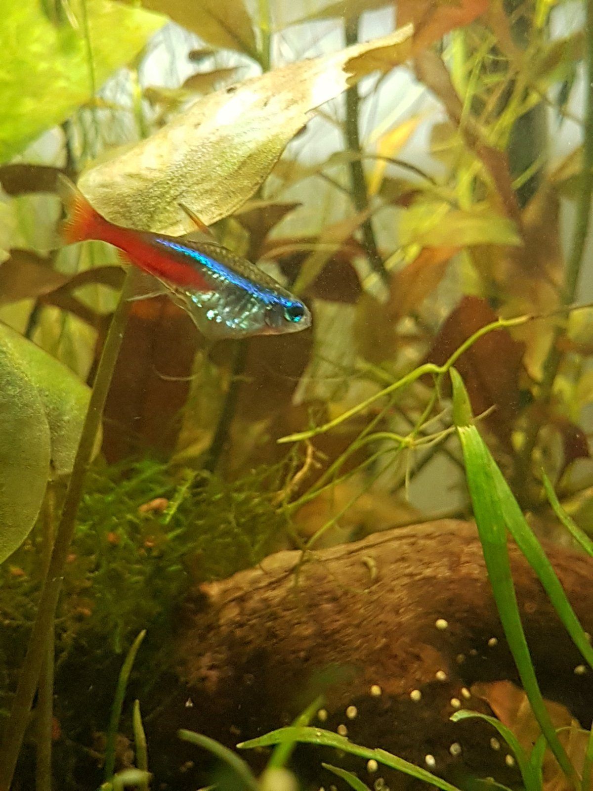 My tank is 55L, with a betta, amanos, a nerite and nine neons. It's planted/heated/filtered, long cycled, and the water parameters are unremarkable.
