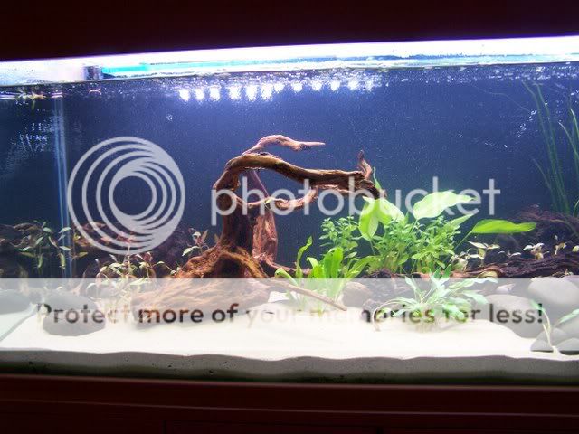 The T8 light is on for 11hrs per day and the T5 one for about 6 hrs. I'll take some more pics later as I got a few plants from greenline a few days ago. I'm having a few algae problems at the moment but hopefully this will clear up as the plants get more established.