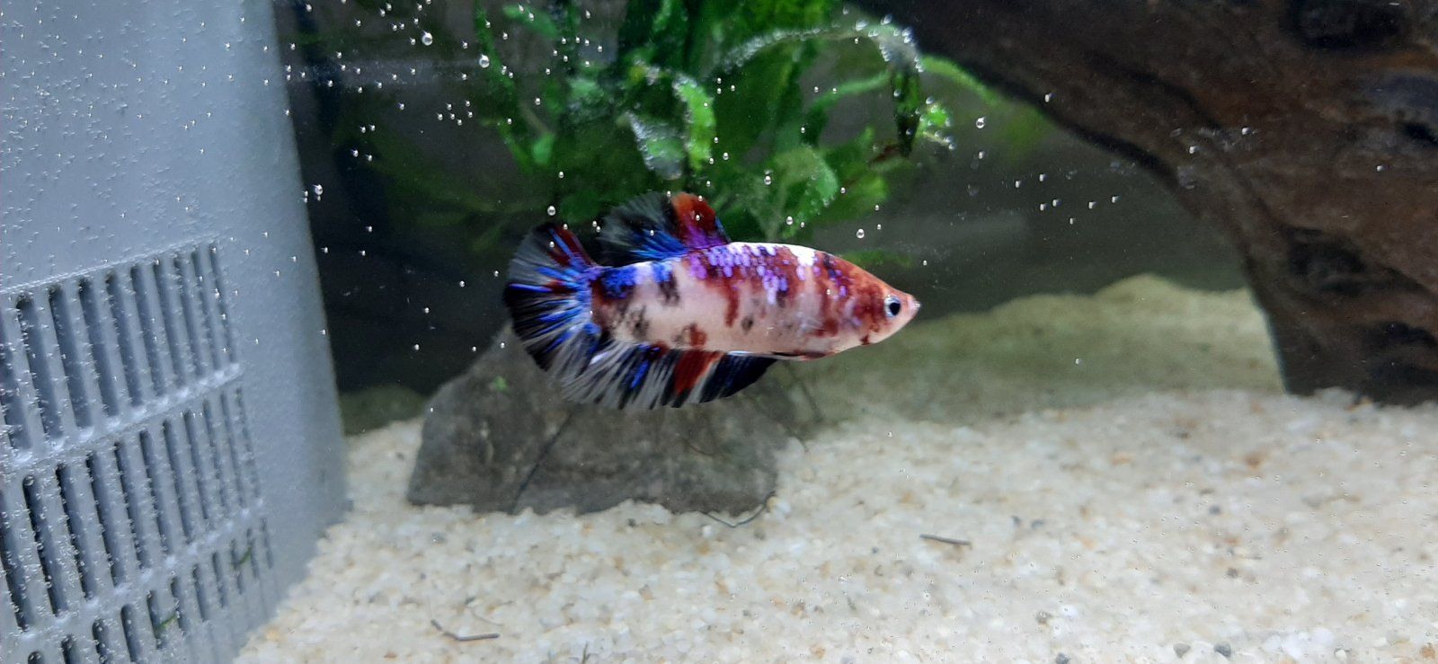 I just finished setting up our galaxy koi plakat male betta's new 5 gallon. I'm going to pick up a curtain to put behind his tank to separate him from the kitchen.