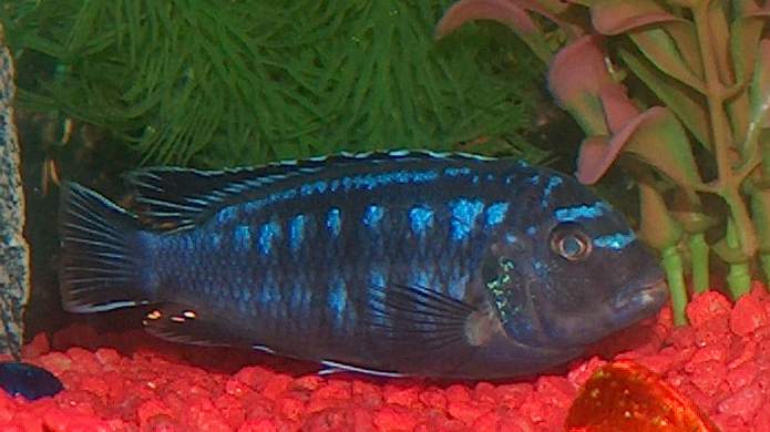 i had just put her in the tank everything was new, she stayed there for about 30 min then made herself a teritory. i have a male johani and a small oscar with her, she is doing well