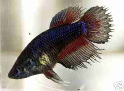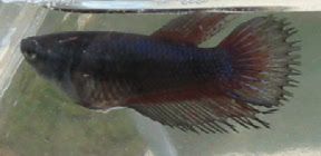 This is Anastasia. She is the double crowtail female that caught my eye originally on ebay. Her body is blue. Her fins start out red but them fade to a blue-ish grey. She was easy to photograph (for a fish.) She would actually occassionally stop swimming all over the tank and flare out her fins a bit.
