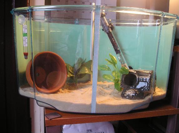 so that just before i get him I can slide the plastic canvas straight in to divide the tankIm planning on putting sand in the bottom and few silk plants. Also have a terracotta plant pot and a treasure chest with a hole in for a hidy place.