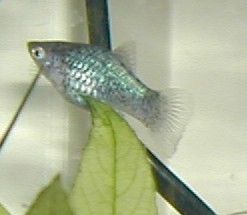 I only got this blue platy (and another one, white orange and black mickey mouse) 6 days ago. She'd been swimming around fine, not clamped up, although she hid a bit, I assumed she was just settling in. The only unusual thing I had noticed was the alst few days she hadn't come out to eat, or she'd go up to food but then not seem to eat it. When I first brought her home I'm pretty sure she ate. Thought she was looking a tiny bit skinny, but again, I thought it was just a settling in thing. She was the smallest platy in the tank, but by no means a TINY fish. She was not being harassed by other fish. There was no fungus or other growths on her, I had a bit of a look when I took her out.