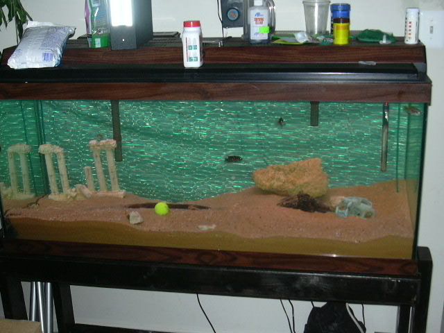 just getting started. i wanted to set my tank up with live plants, but i can't find any cichlids that wont uproot plants. so i think i'll just fill the tank up with cichlids. right now i have 4cons and 3 jack demps in there. my 2 largest cons just had babbies so that should help me fill the tank up some.