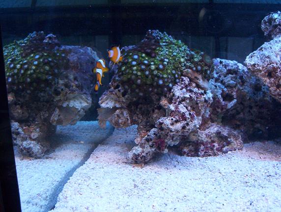 I bought some live rock today, but apart from that I bought a nice green buton coral and a very cool starfish that loves to dig himself under the gravel