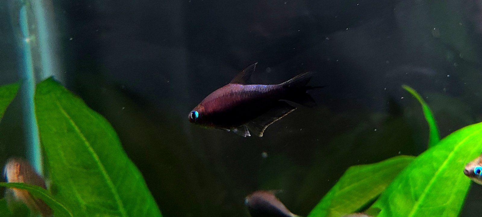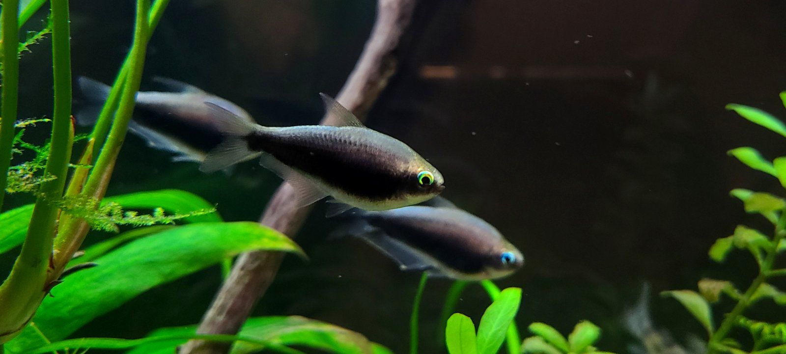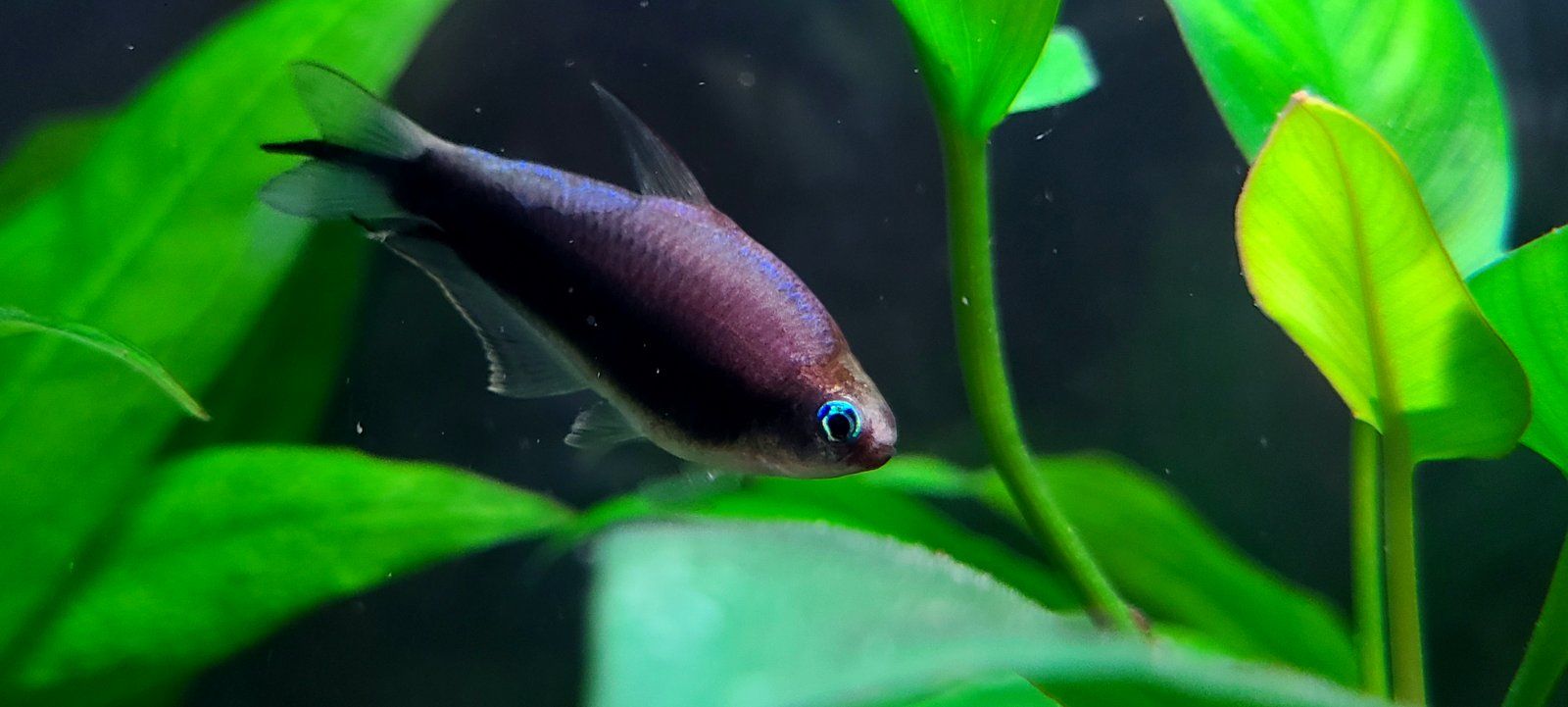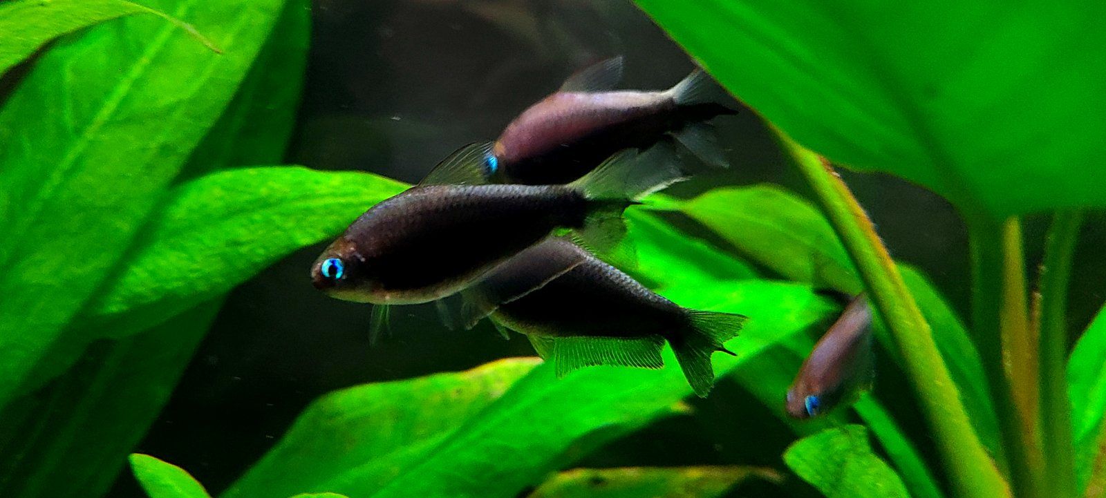 I got the black variety of Nematobrycon palmeri, and the first day they looked more like the standard but darkened up over time and dang they look like they vanish into shadows with a glowing outline. But not pure black, very nice midnight blue and purple tones instead.
