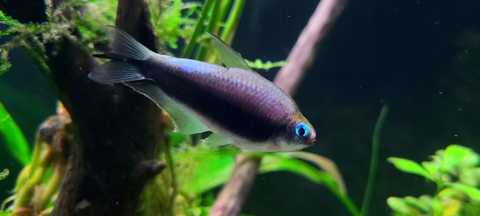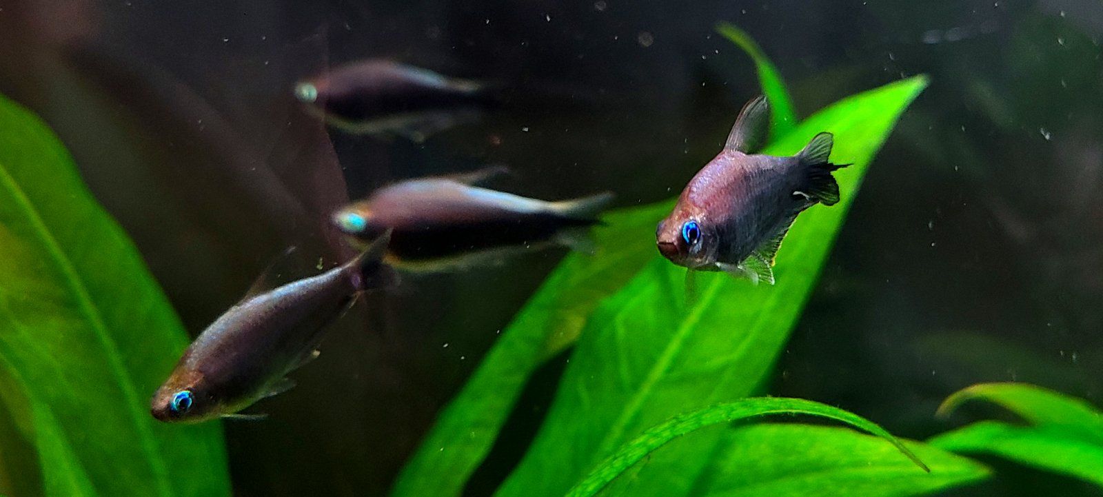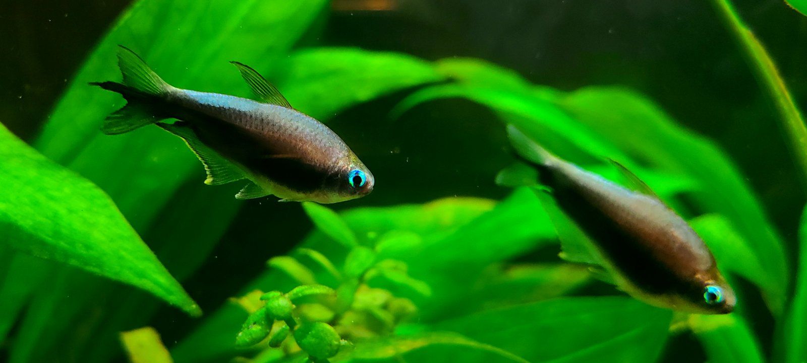 I got the black variety of Nematobrycon palmeri, and the first day they looked more like the standard but darkened up over time and dang they look like they vanish into shadows with a glowing outline. But not pure black, very nice midnight blue and purple tones instead.