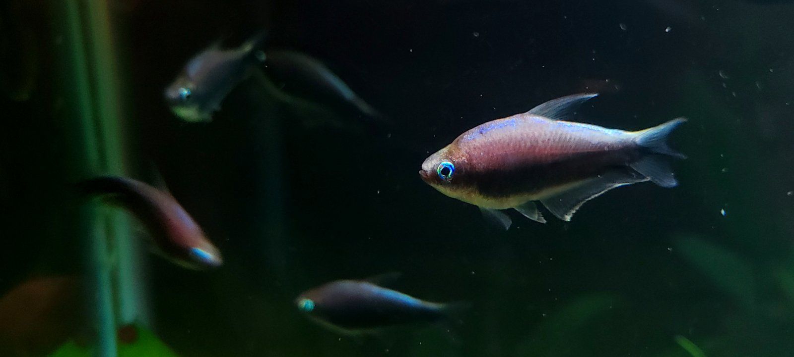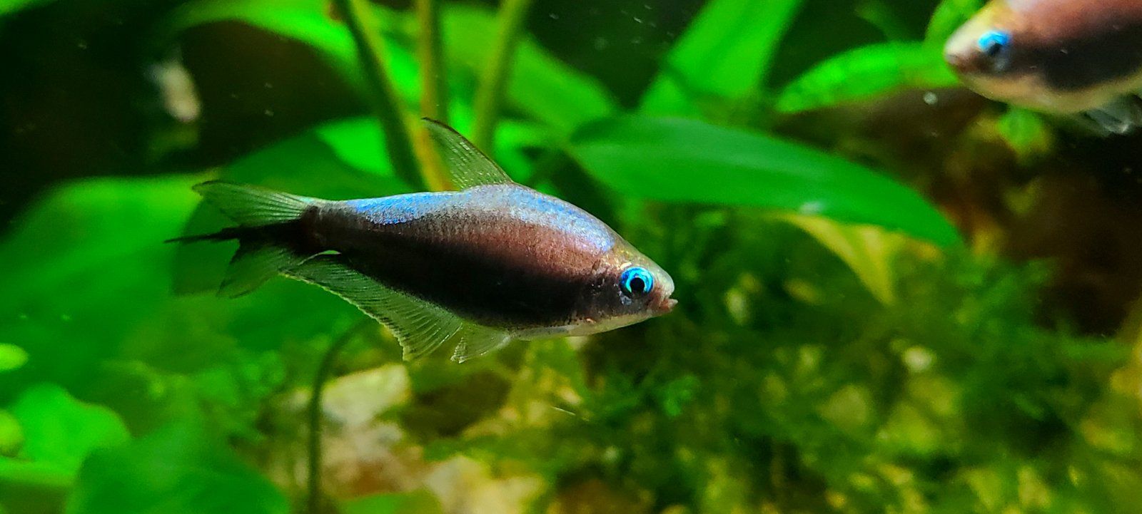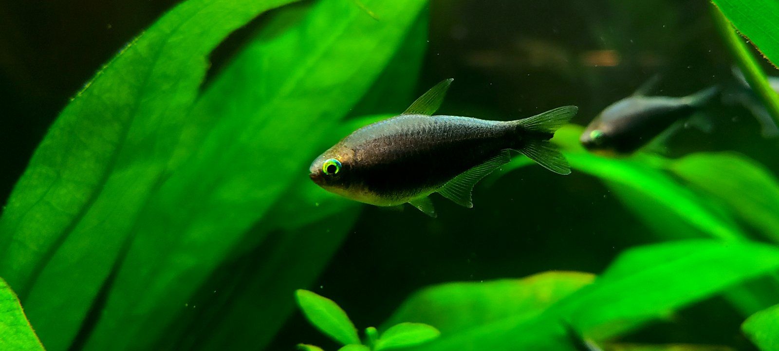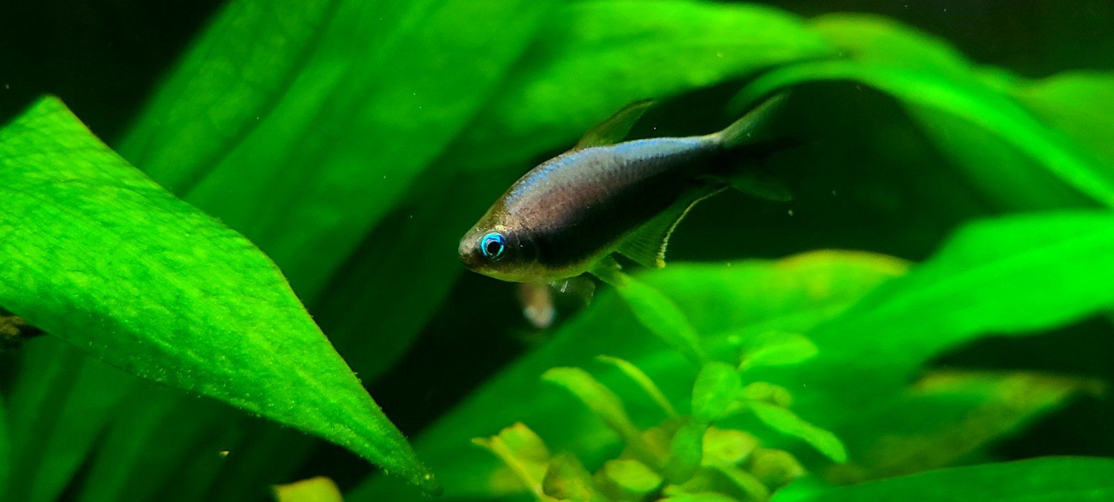 I got the black variety of Nematobrycon palmeri, and the first day they looked more like the standard but darkened up over time and dang they look like they vanish into shadows with a glowing outline. But not pure black, very nice midnight blue and purple tones instead.