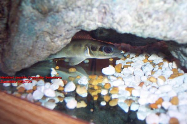well CFC has been begging to see this guy since he found out that I was getting him well here is the best pic that I could get and unfortunatly it is of him in his cave lol so all you can see is his pretty little baby face he still has at least another 7 inches to go till he is the boss man that he can be.