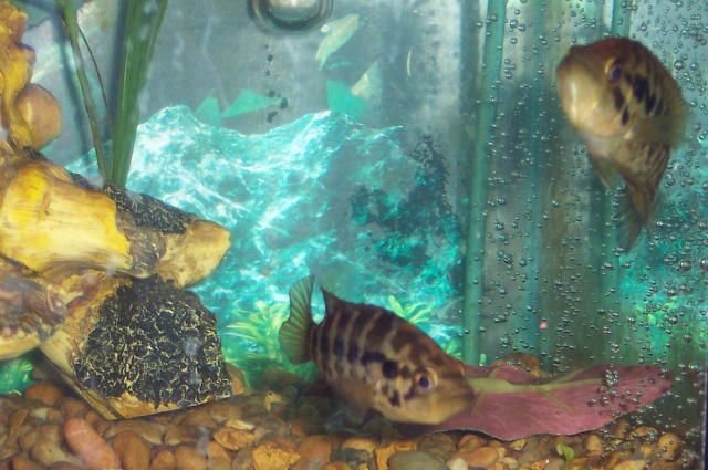 these really are new fish just picked them up today I got 2 baby Jags.... right now they are in a 29 gallon grow out tank but in the next few months I am going to be moving and will be also getting them a very large tank so that they can grow all big and strong.... probably put in a large school of tetras and other fish in there just to add some movement to the tank, but until that time comes they are going to get all debugged and grow up in the 29.