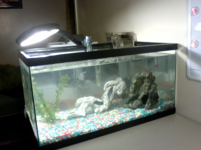 anyway, i set out to a LFS and the guy there seemed to know his stuff, so i explained i just started a new tank. He told me to get 2 mollies and leave them in the tank for a week with out doing any water changes, and feeding small amounts daily. He also told me to give my fish a better chance to buy this bacteria supplement. So i did as told, and two days later one of my mollies is dead (the smaller one that always hid and didn't want to eat). so i slightly panicked and did a 20% water change, removed the dead fish and added more bacteria supplement.