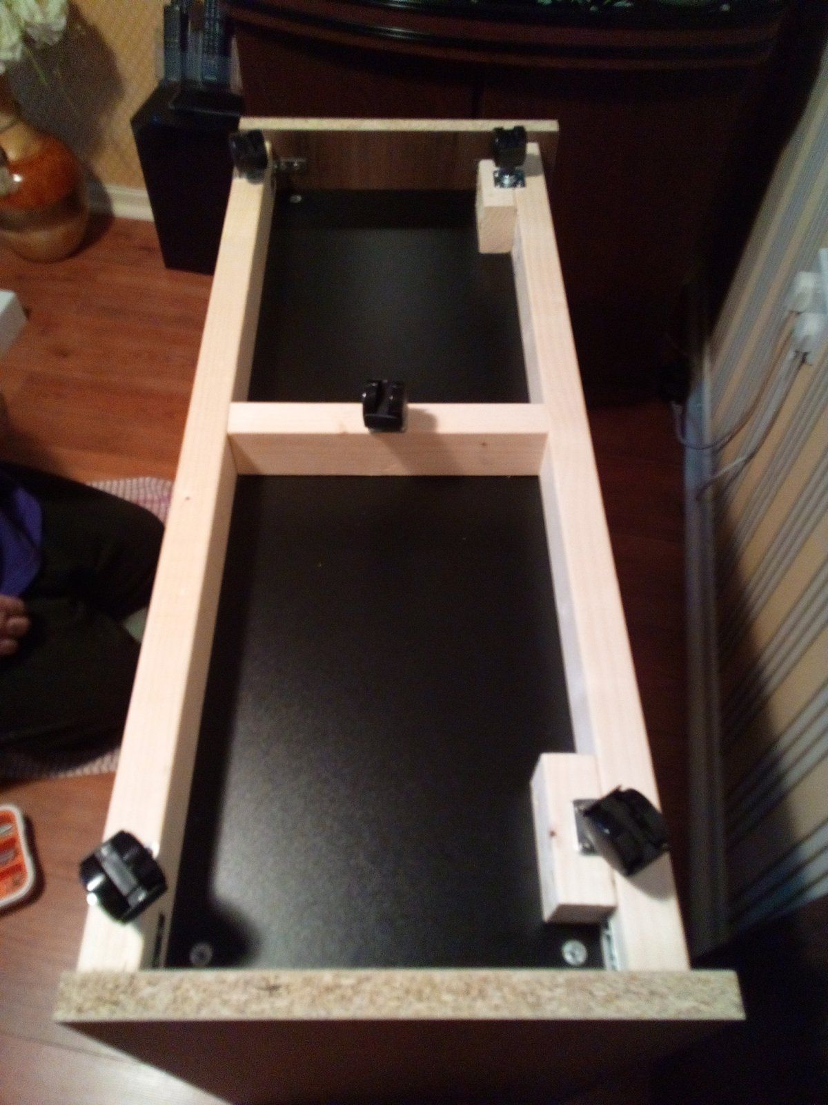 My hubby then pulled it forward and attached wood around the base just a fraction from the ground because if the wheels could never take the strain it goes straight to the wood and door handles added also and it's been running nearly 2wks and at the moment ammonia 0.25, nitrite 0 and nitrate 10.