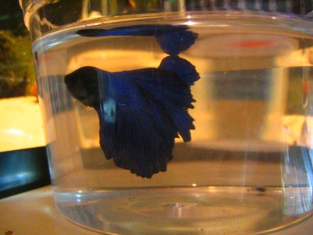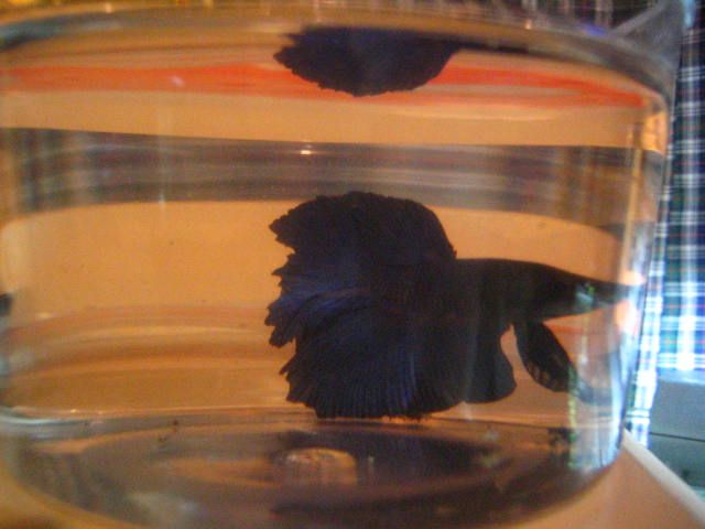 im not sure my new halfmoon needs his fins healed but after looking at him a while i noticed that it kinda didnt look like it might. to make this short it kinda looks like maybe he was in a fight at one point and part of his fins dont quite go out far enough to make the "halfmoon" a smooth edged moon. does that make sense? he's still a halfmoon, not a delta or a super delta, its the back of the rear fin that i thought looked that way. maybe its just that its still in the jar and cant fan out all the way yet