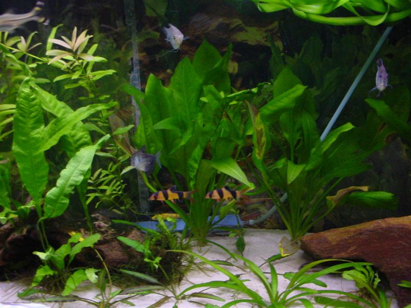 It does look like a vallisneria doesn't it...but it isn't, it's a thai onion plant with insanely long leaves that coil up at the top, the latin name is Crinum thaianum, you can just about see the main plant in the background there