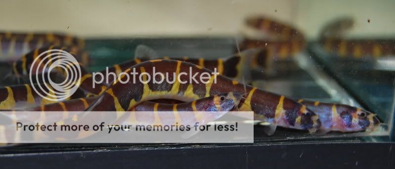 I picked up 10 of these Kuhli's today, they were imported as Pangio Myersi but I would say they are Pangio Kuhli and Pangio semicincta. The biggest one is around 3" and the smallest around 2 3/4", not a bad price at £1.20 each either