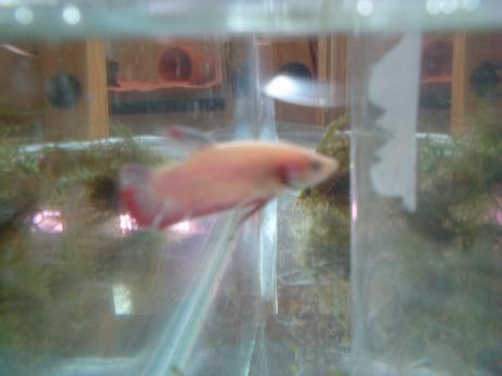 12 o'clock noon i woke up this morning, I was going to the pet shop for some more dechlorinator (i seem to go through the stuff like water with 6 fish tanks). I got dressed and was on my way. Just as i got there some boxes were comming in the back. Me and my dad were like 'what is that'. They took them into the aquarium part and opened them. What was inside.......... Male Bettas! and loads of other fish! We watched as they floated each male betta in a tank with other fish. There was a half moon, but its tail was all weird and lots of comb tails. There was one perfect soild red veil tail floating in a tank of female guppies. They let it out and the females sorrunded him. I said to my dad " should i save him" he said "its up to you". Then i tapped the man on the back and said could i have this betta! The next thing i knew, he was floating in a bag in my 4 gallon tank. He seems to stay at the bottom allot, guess hes just setteling in!