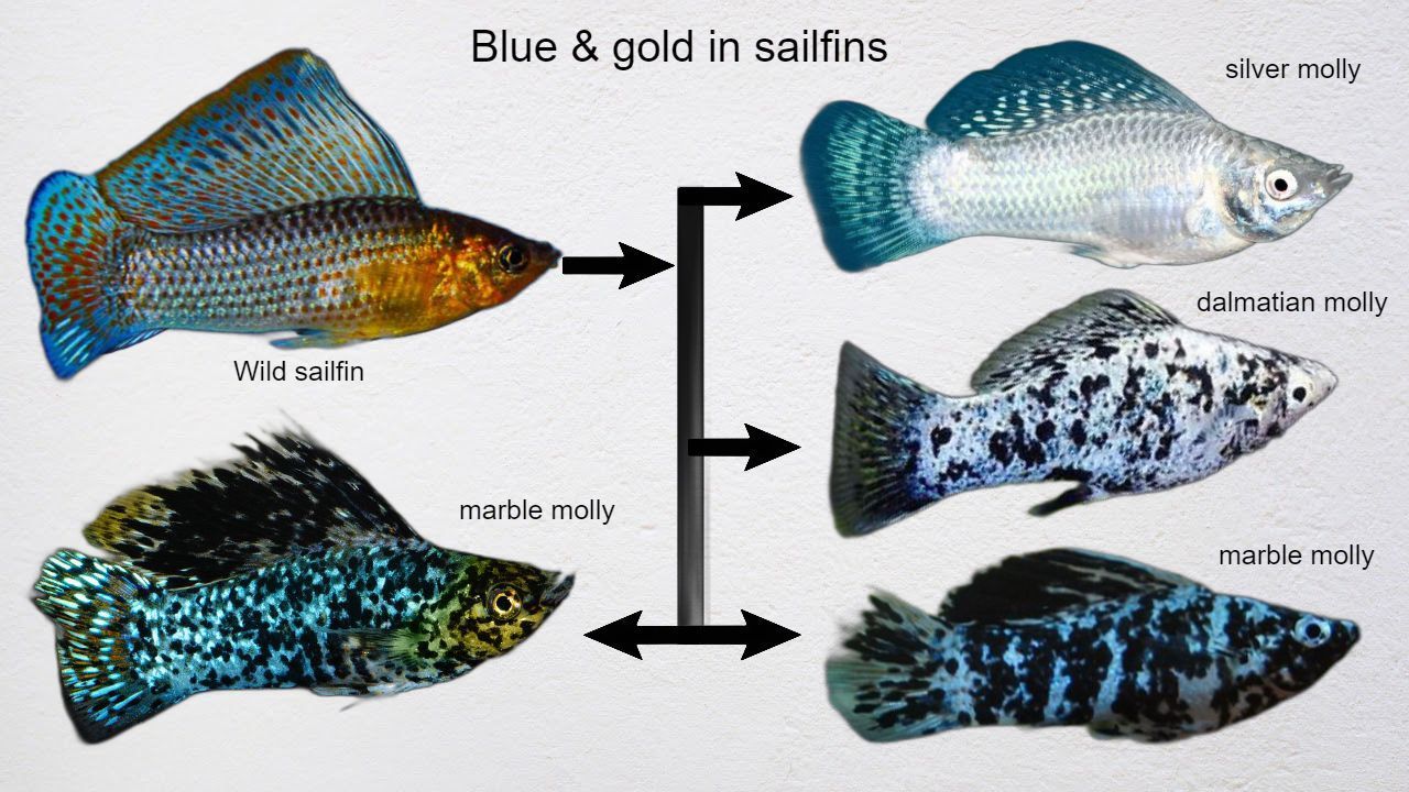 Does this mean mine are sailfins? The adults look like a marble (the male) and a fairly typical black molly female, although she does have some speckling too. She is a big girl, and sailfins are generally larger, aren't they? A friend thought my previous trio might be sailfin/black molly hybrids. I'm guessing there are lots of hybrids around? I do really like the wild traits! That Wild Sailfin and the Marble molly on the left in that chart are absolutely gorgeous.