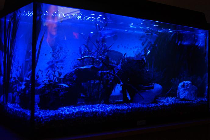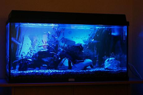 i glued the two strips to the top of the lid and now attached it to a 12v adapter and done i was amazed at how blue it was but my normal lighting is t8 tubes so its just for after lights out effect.