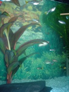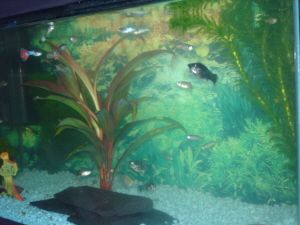 I don't know if the red plant in the middle is real or plastic. If it's a real plant, I don't think that wont last long underwater...![]()