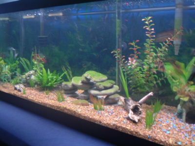 Oh and in my other tank my cons. finally brought there little babies out...there so small you cant see them but theres about 40 - 60 of them in this pic.