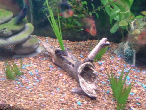 and this is the other piece of driftwood i made...i used fishing line to tie a rock to the bottom which i buried under the gravel