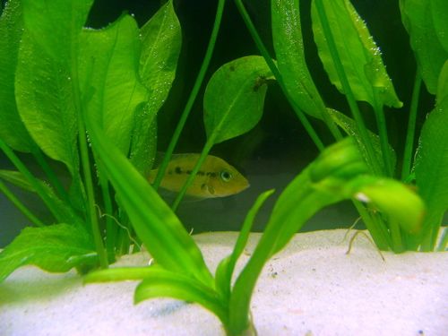 I decided to take a couple more pictures of my FM now that they decided to come out and say cheese. The pictures are a little blurry because of some kicked up sand from the firemouths. Plus I need to replace the fiber. Its a bit dirty, plus I don't have my Eheim filter yet.