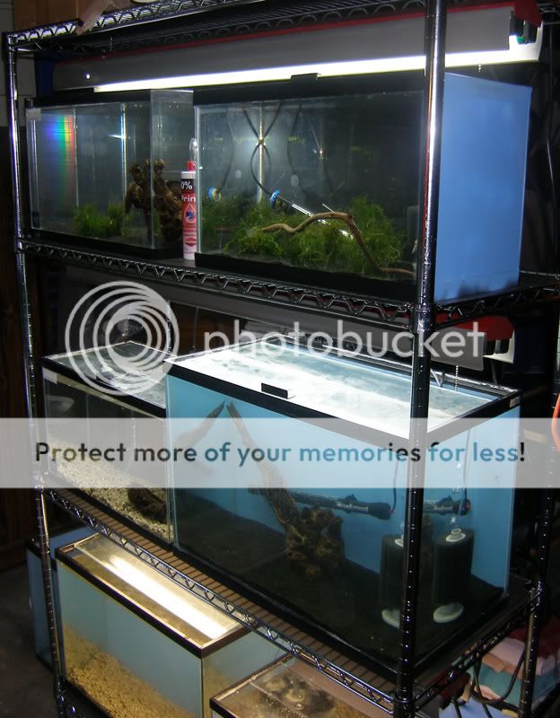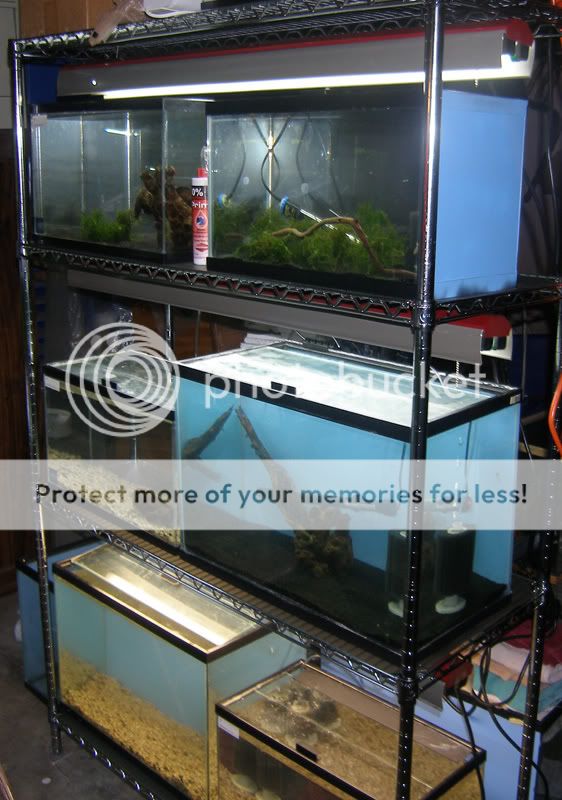 just water....... i had just put the water in the last tank. not sure what will go in all of them but a couple will be shrimp tanks. maybe a apisto tank.Do you keep fish or water? lol, looking like a nice setup though, breeding anything?