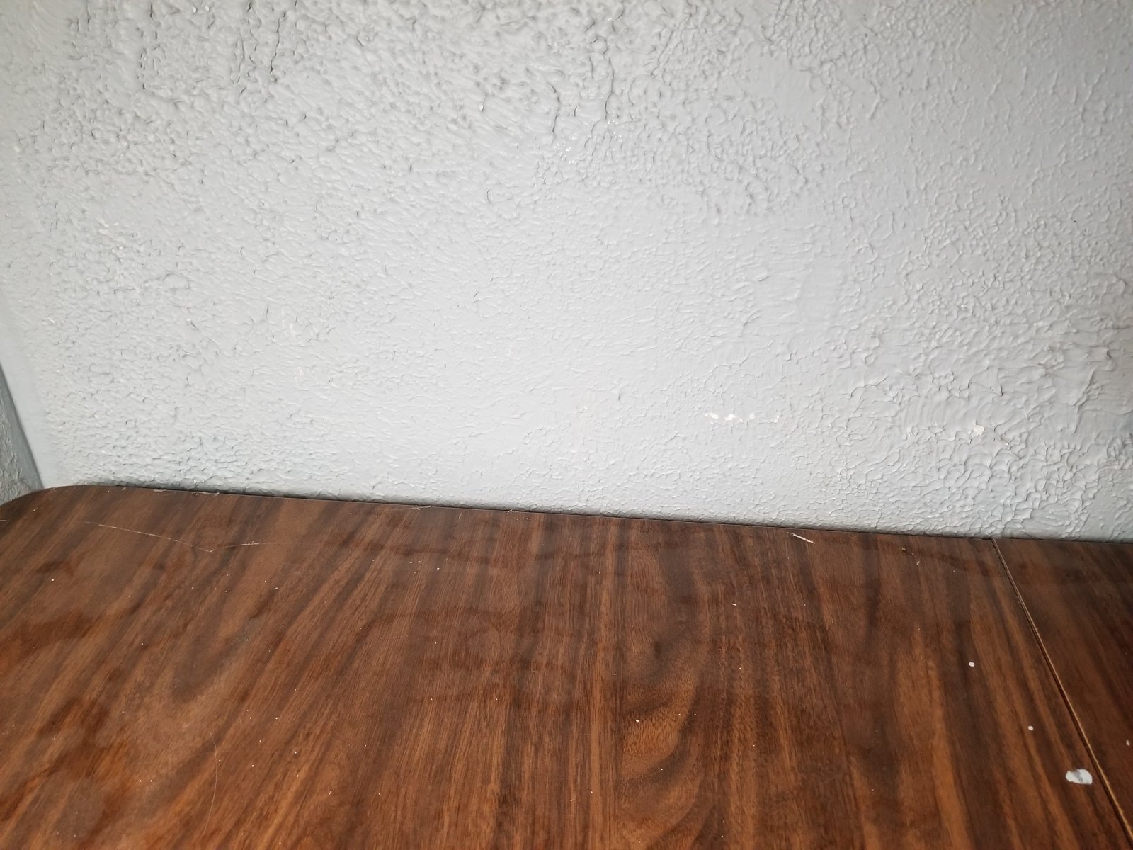 I bought a piece of plywood the other day and cut it to size. I also got some shims for leveling it out. I spray painted it all yesterday with some black Plasti Dip.First things first. You might have noticed a little bit of an incline in the water line on that tank. The floor is uneven there. I'm told the table once held a much larger tank, so I'm not worried about the table holding this up. First thing I'm going to do after breaking it down is putting a piece of plywood under the tank and then some shims to level it out.