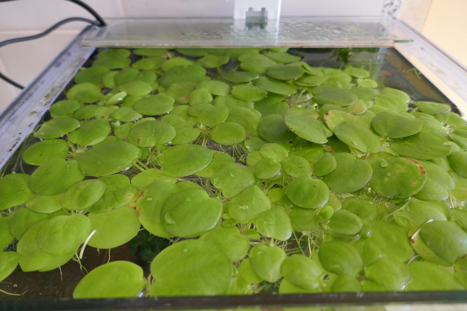This is what the frogbit in the shrimp tank looked like a couple of moths ago - this is a 30 cm cube to give you some idea of scale