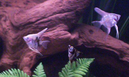 Have you tried feed the angels and then taking pictures? They won't be swimming the way you want them to, but you can get pics of all of them at one time.