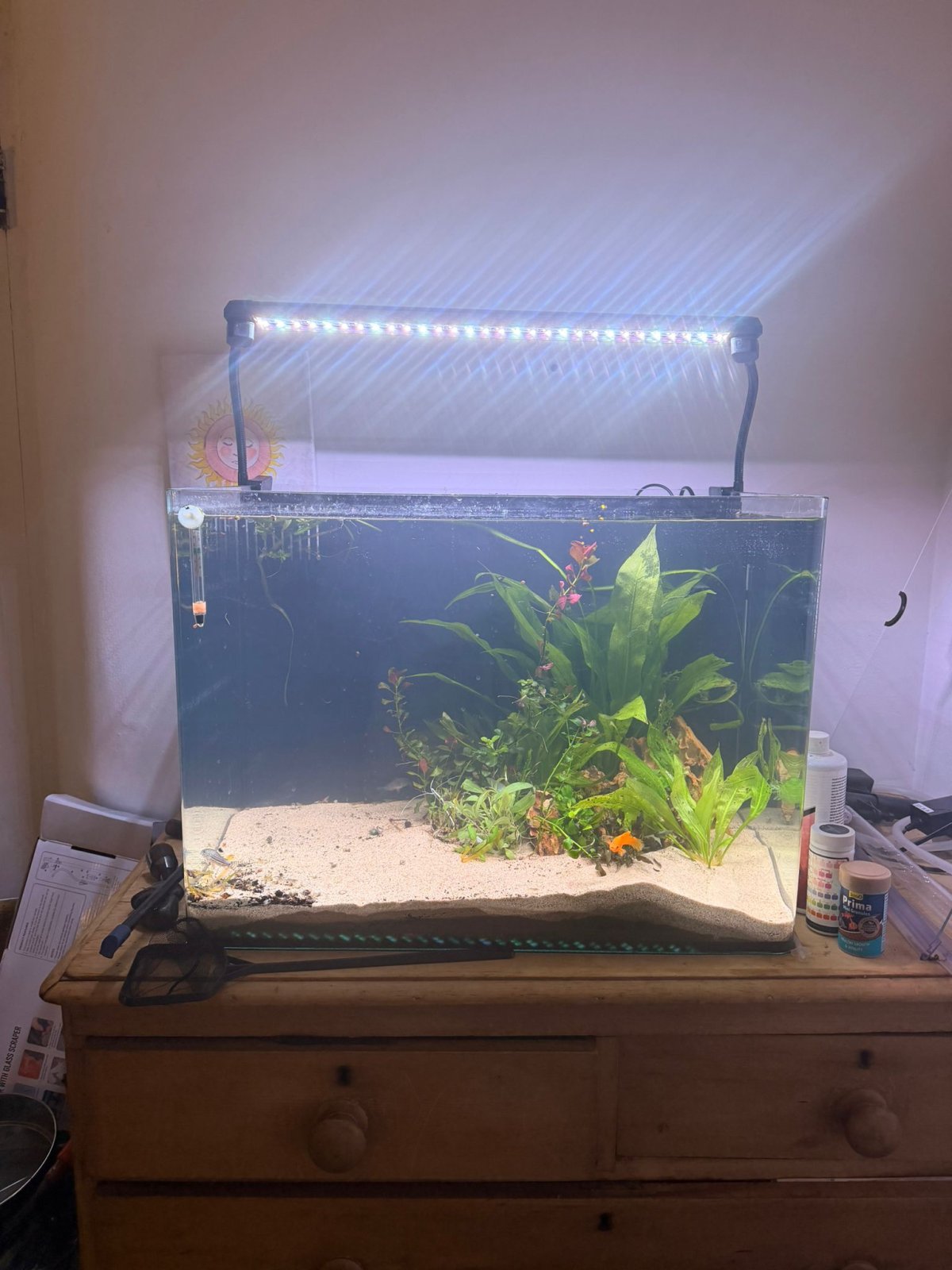 Luckily fish SEEM fine so far and I am hoping the meagre amount of filter media from old tank is enough to seed this one.