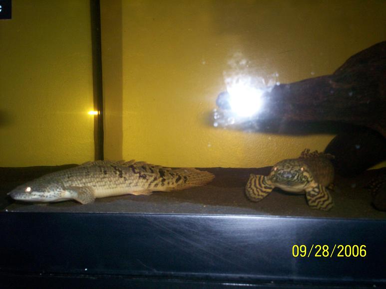 i decided to put my bichirs in the new tank for a while they are starting to look bite size in the 100g