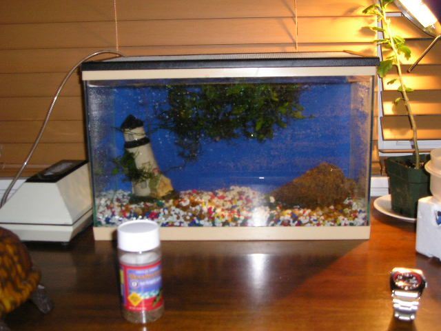 I'm cycling it with four guppies who could have met my african knife fish instead so they're pretty happy. The water qualtiy at the petstore wasn't much better either.