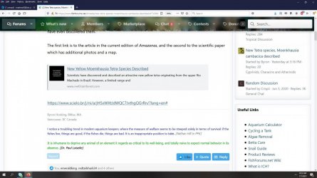 The discovery and describing of a new species of tetra is not anything particularly remarkable these days, as new species are being regularly discovered though it takes months for most to be described due to the numbers and "too few" ichthyologists. I'm posting this paper though because of (1) the pertinent observations made by the authors concerning this species, which for reasons outlined in the paper they recommend be declared "Near Threatened" on the IUCN's Red List of species, and (2) an interesting discussion on the developmental truncation of the lateral-line canals.
